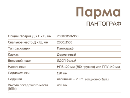 Габарит в разложенном состоянии: 2300х1650х650   Спальное место: 2000х1550. Узкие мягкие подлокотники- 120мм.