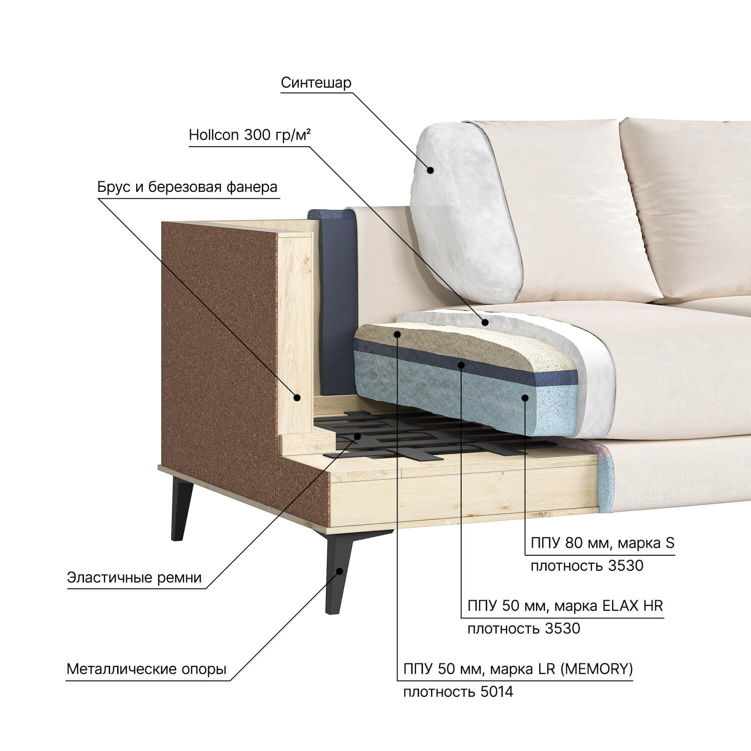 Основание посадочного места: ремни амортизации с армирующими нитями, сэндвич настил из пены высокой эластичности и пеной с эффектом памяти (Memory)