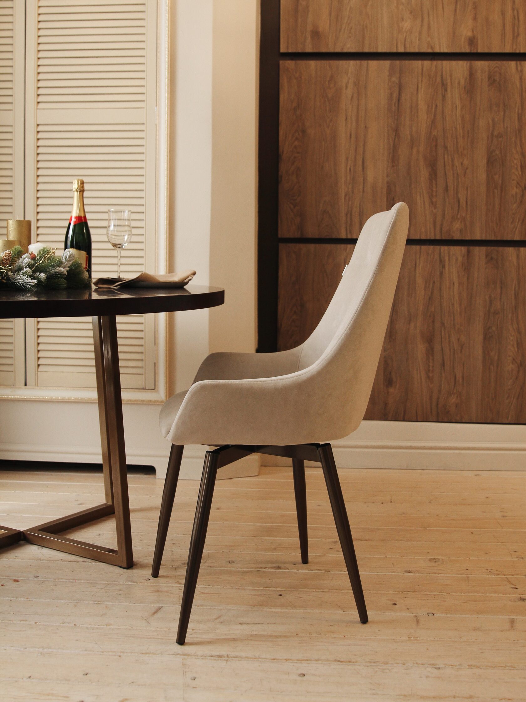 - обивка стула выполнена в ткани велюр;