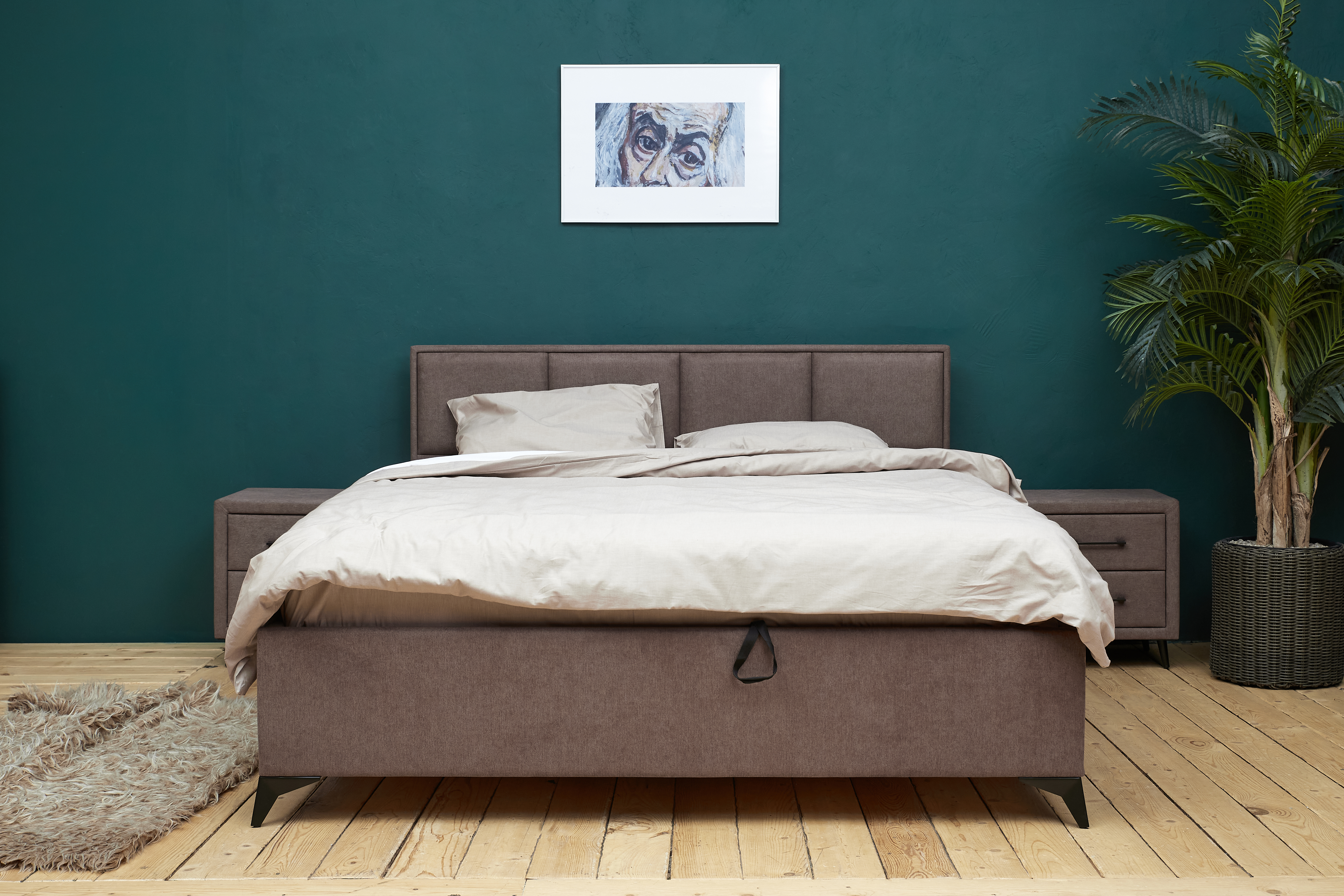 Интерьерная кровать РИЧИ выполнена в современном стиле. Изголовье этой кровати имеет минималистичный узор и аккуратный внешний вид. Идеально подходит для стиля “LOFT”. Ножка-опора «ЧАЙКА» позволит использовать для уборки под кроватью робот-пылесос.