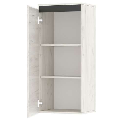 Пенал навесной 1С "ГРЕТТА" 1-створчатый с полками. Применение интегрированной ручки на фасаде делает модель стильной и безопасной – дверца открывается за профилированный выступ. Фасад обработан кромкой толщиной 1 мм.