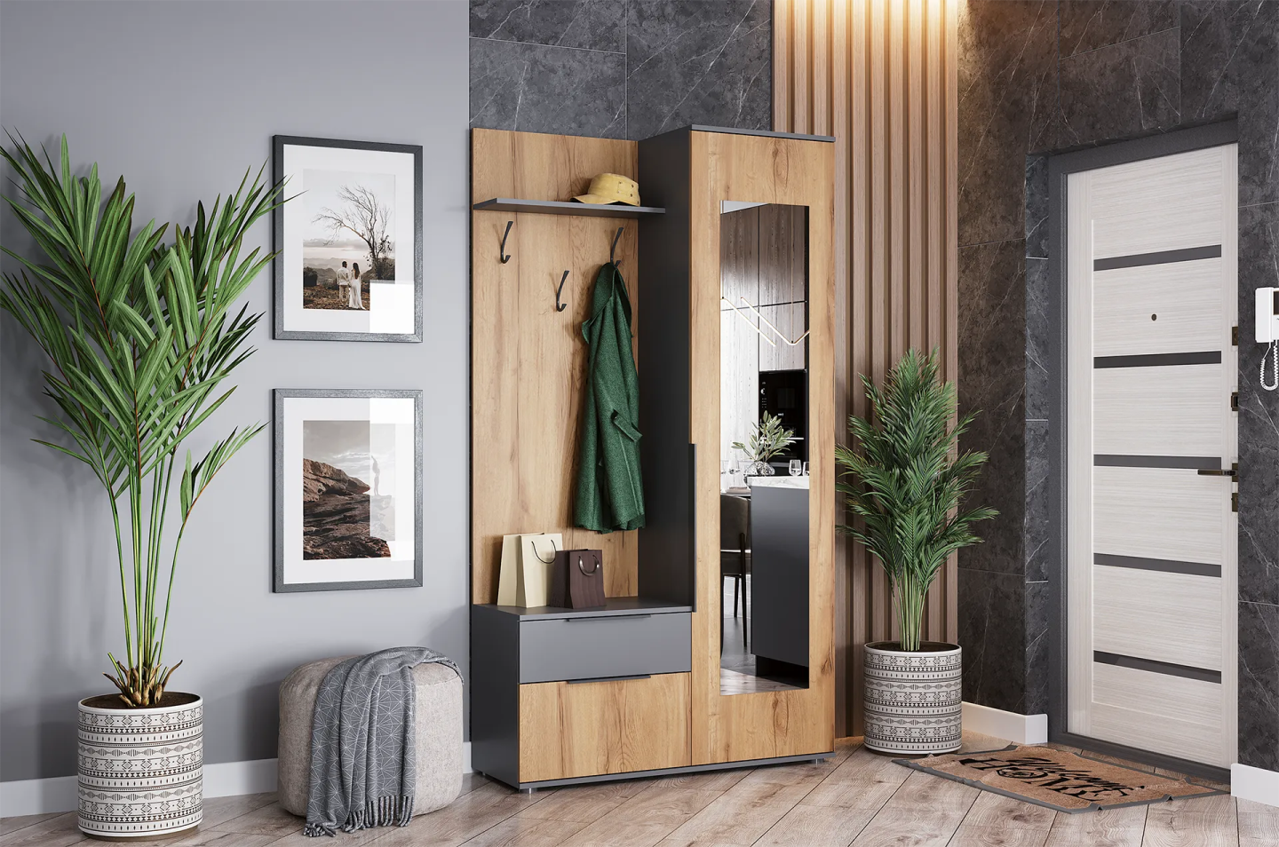 Фасад: ЛДСП Тёмно-серый Лофт, Дуб Золотистый
