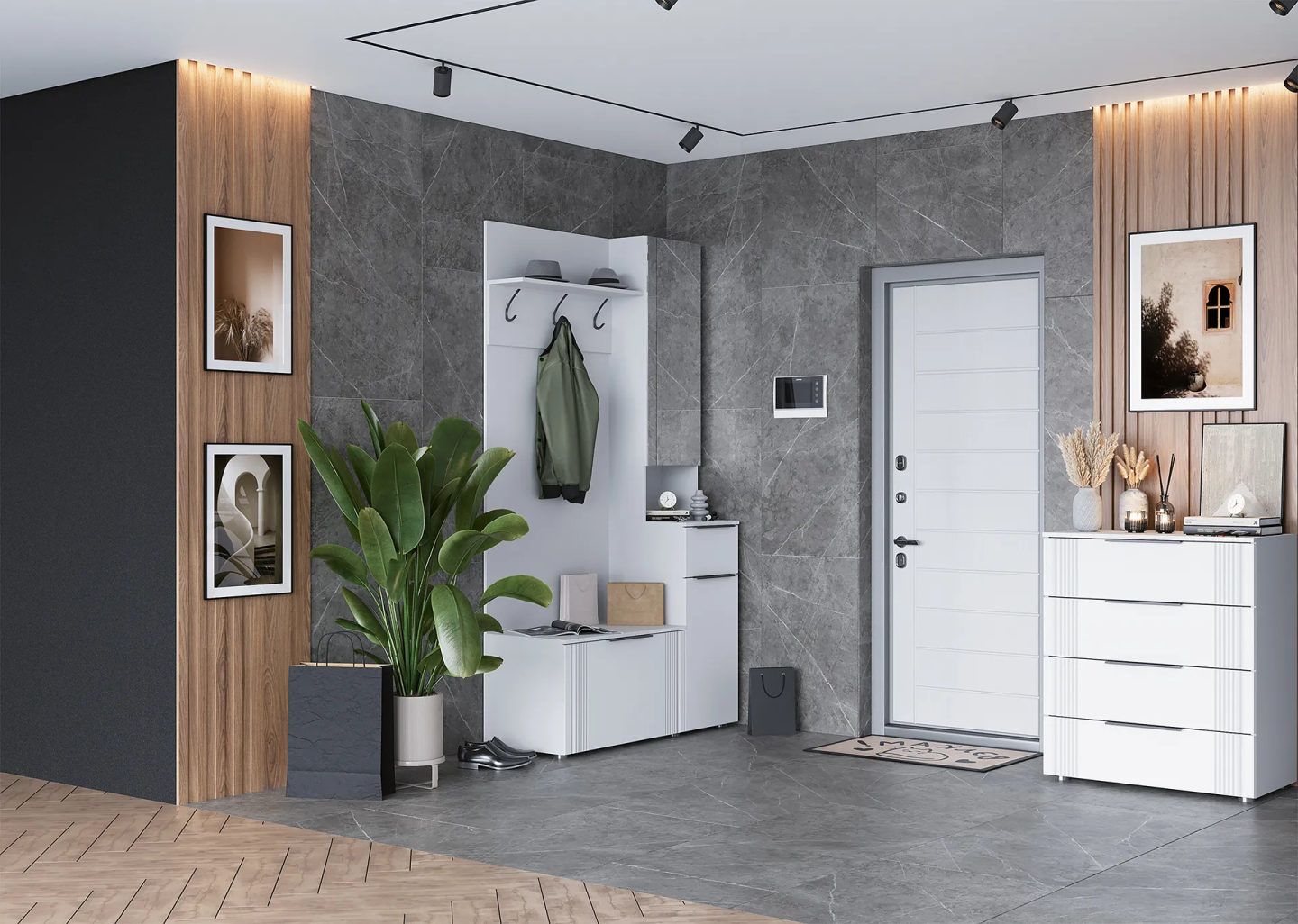 Каркас: ЛДСП Белый Лофт; ЛДСП Тёмно-серый Лофт