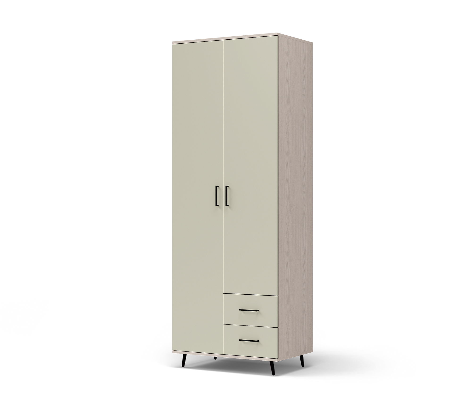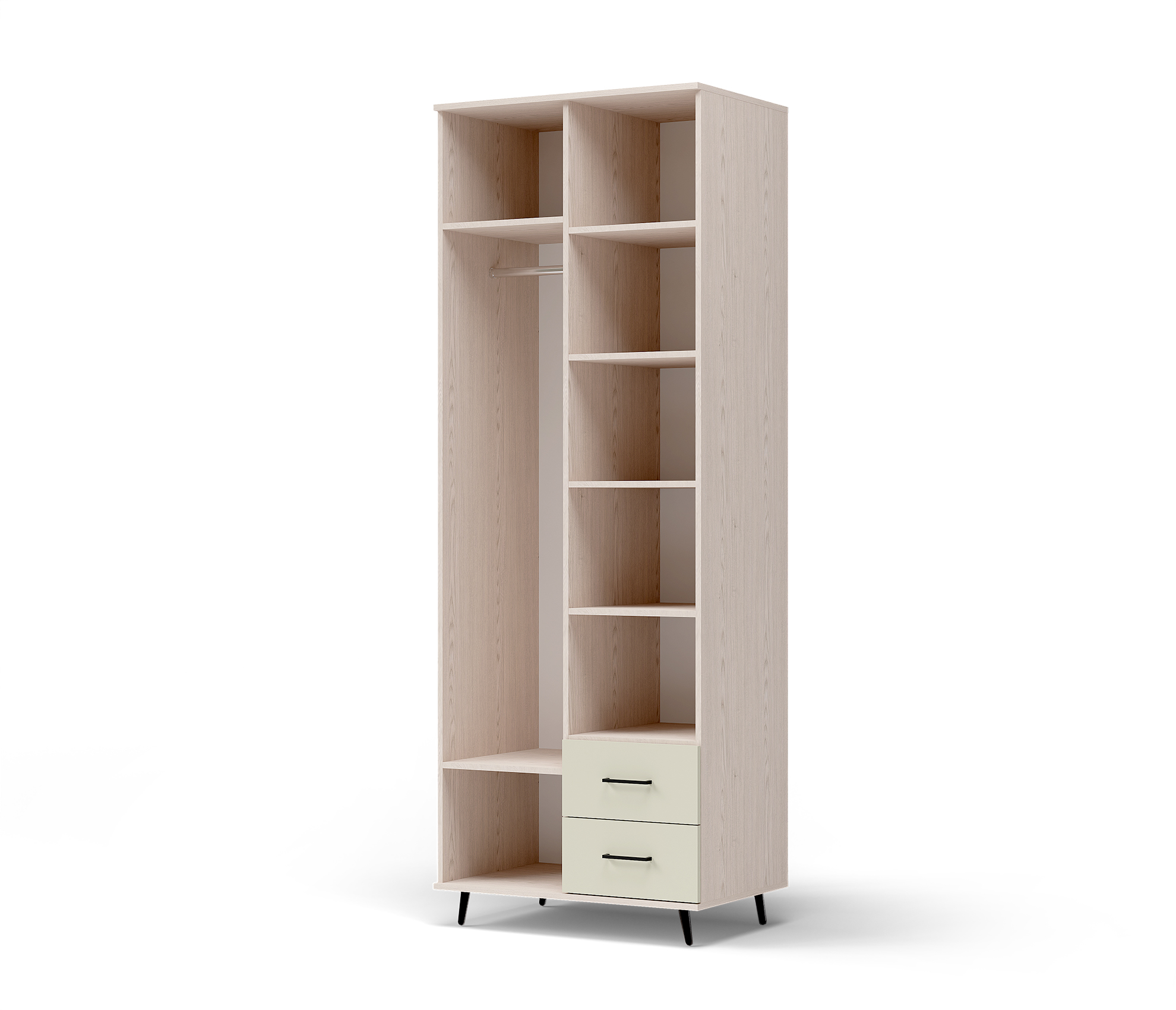 Элегантный и вместительный шкаф из серии АРТИ с двумя ящиками, полками и штангой. Его корпус выполнен из ЛДСП класса Е1, фасады из МДФ. Ящики имеют шариковые направляющие полного выдвижения.
