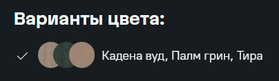 Варианты цвета: Кадена Вуд, Палм Грин, Тира