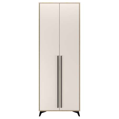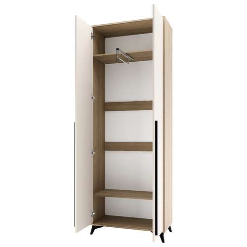 Шкаф 800 2С "ЕВА" с выдвижной металлической штангой. Фасады и лицевой периметр шкафа обработаны кромкой 1 мм. Чёрные металлические ручки-рейлинги и ножки-опоры.