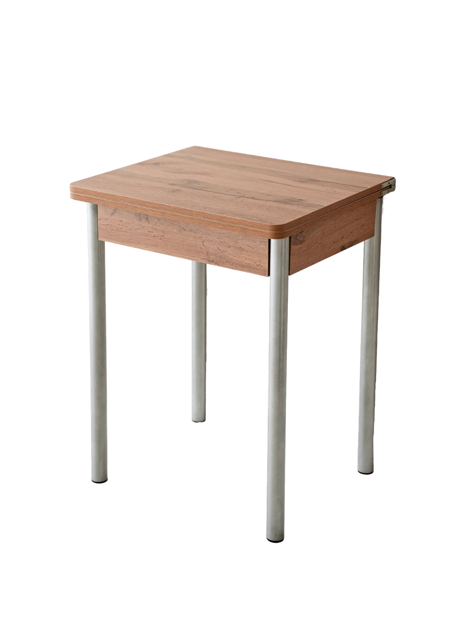 - стол раскладывается с помощью ломберных петель и поворотной столешницы;