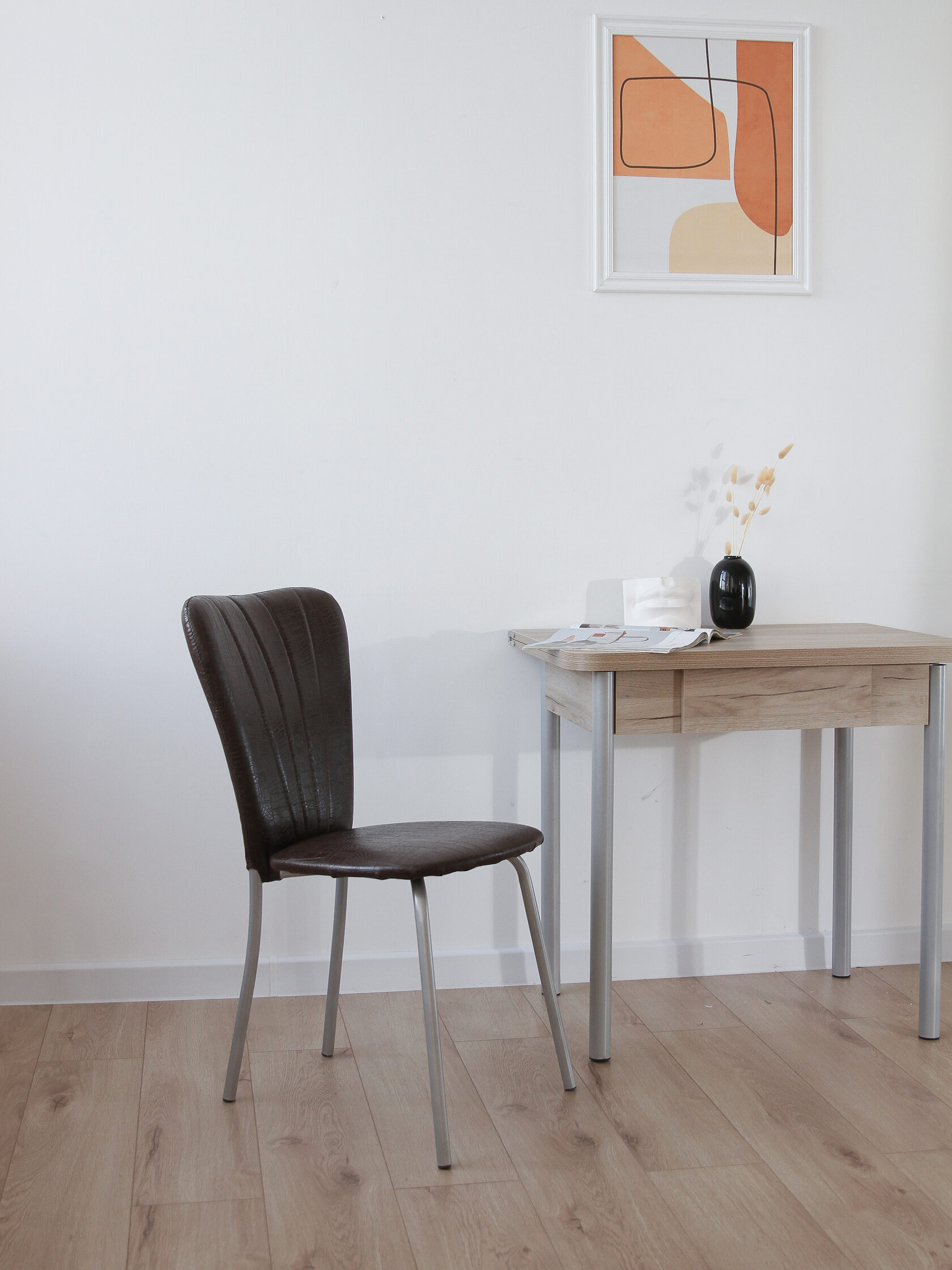 - обивка стула может быть выполнена в ткани, либо в кожзаме;