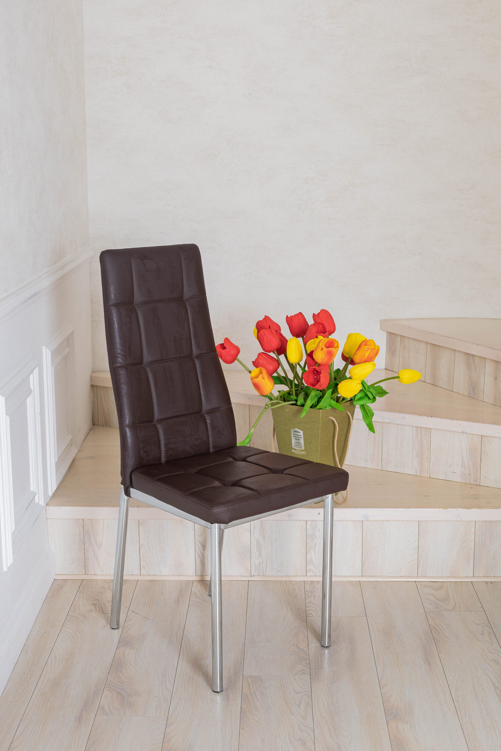 - обивка стула может быть выполнена в ткани, либо в кожзаме;