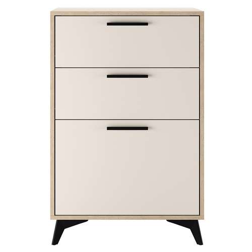 Тумба 600 1С2Я "ЕВА" с откидным фасадом (газлифт), с ящиками на направляющих скрытого монтажа с доводчиками. Фасады, крышка и лицевой периметр тумбы обработаны кромкой 1 мм. Чёрные металлические ручки и ножки-опоры.