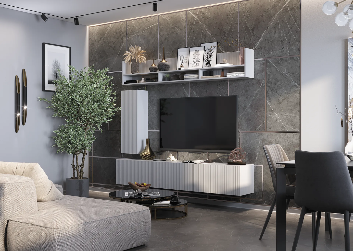 МДФ плёнка ПВХ Силк Титан (графит); плёнка ПВХ Софт Айс (белая), толщина плёнки 320-350 микрон MKM (с праймером)